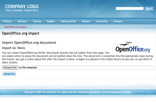You simply select the content you want from your computer or from the server where your content is stored. eZ Publish can detect the type of content uploaded and creates the appropriate web pages.